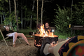 Костровая зона - деревянные кресла, столики, костровая чаша красивая, мангал.